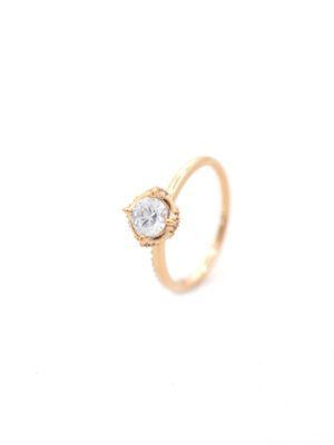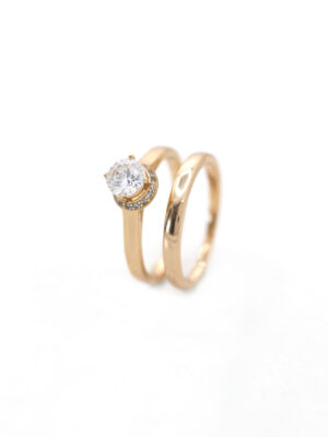 Bague de Fiançailles Dorée avec Zircon Central