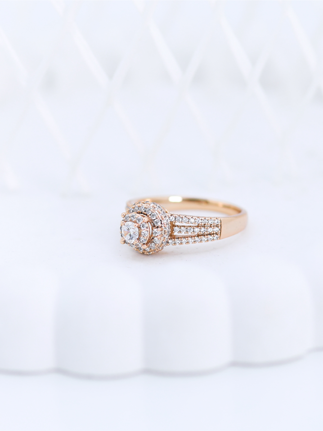 Bague de Fiançailles Dorée Halo Sertie de Zircons
