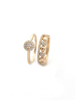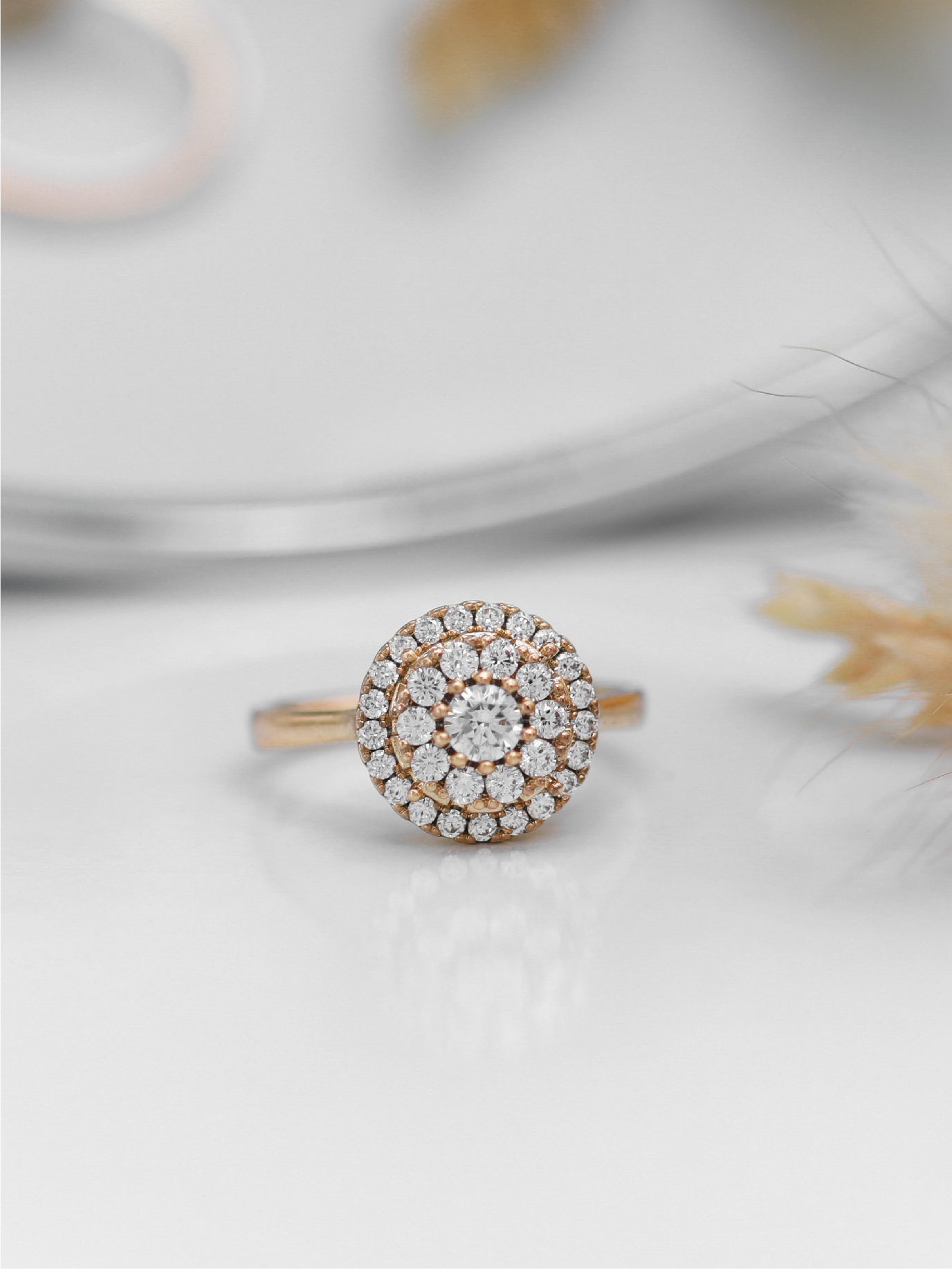 Bague de Fiançailles Dorée Halo Sertie de Zircons