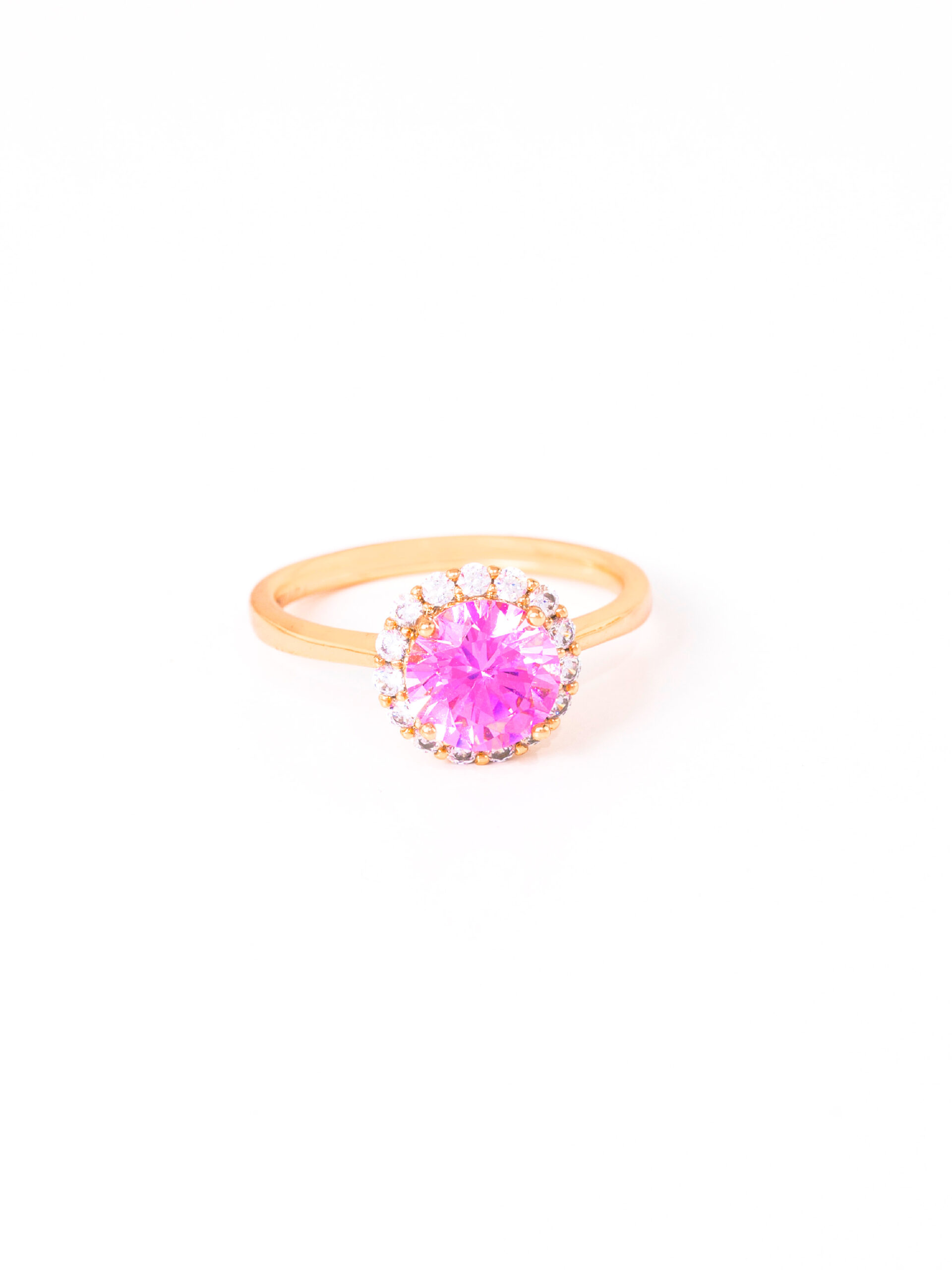 Design: Anneau élégant avec pierre centrale et pavage de zircons sur les côtés