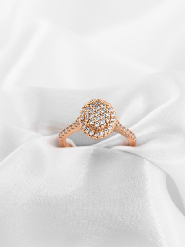 Design: Anneau ovale fin et élégant, pavage complet de zircons