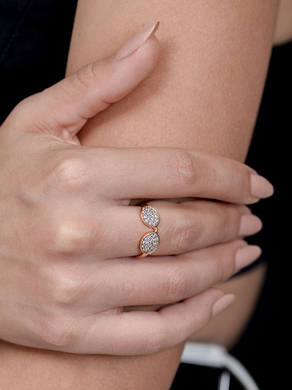 Design: Bague en forme de lunette pour femme, ornée de zircon