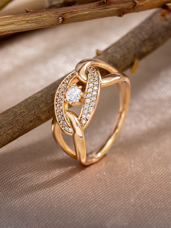 Design: Bague pour femme, décor tressé avec des zircons transparents