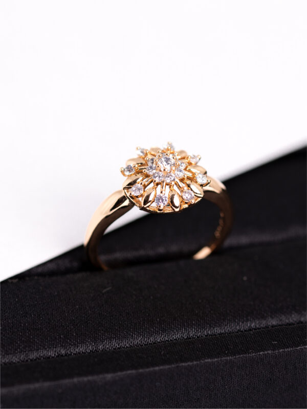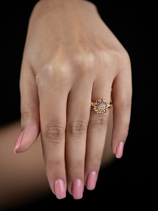 Design: Un anneau fin entourant une pierre centrale en zircon, sublimée par des pétales en zircons pavés, créant une lueur éclatante et romantique.