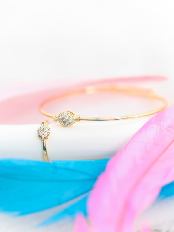 Bracelet & Bague Ananas Dorés avec Zircons – Bijoux Enfant Hypoallergéniques