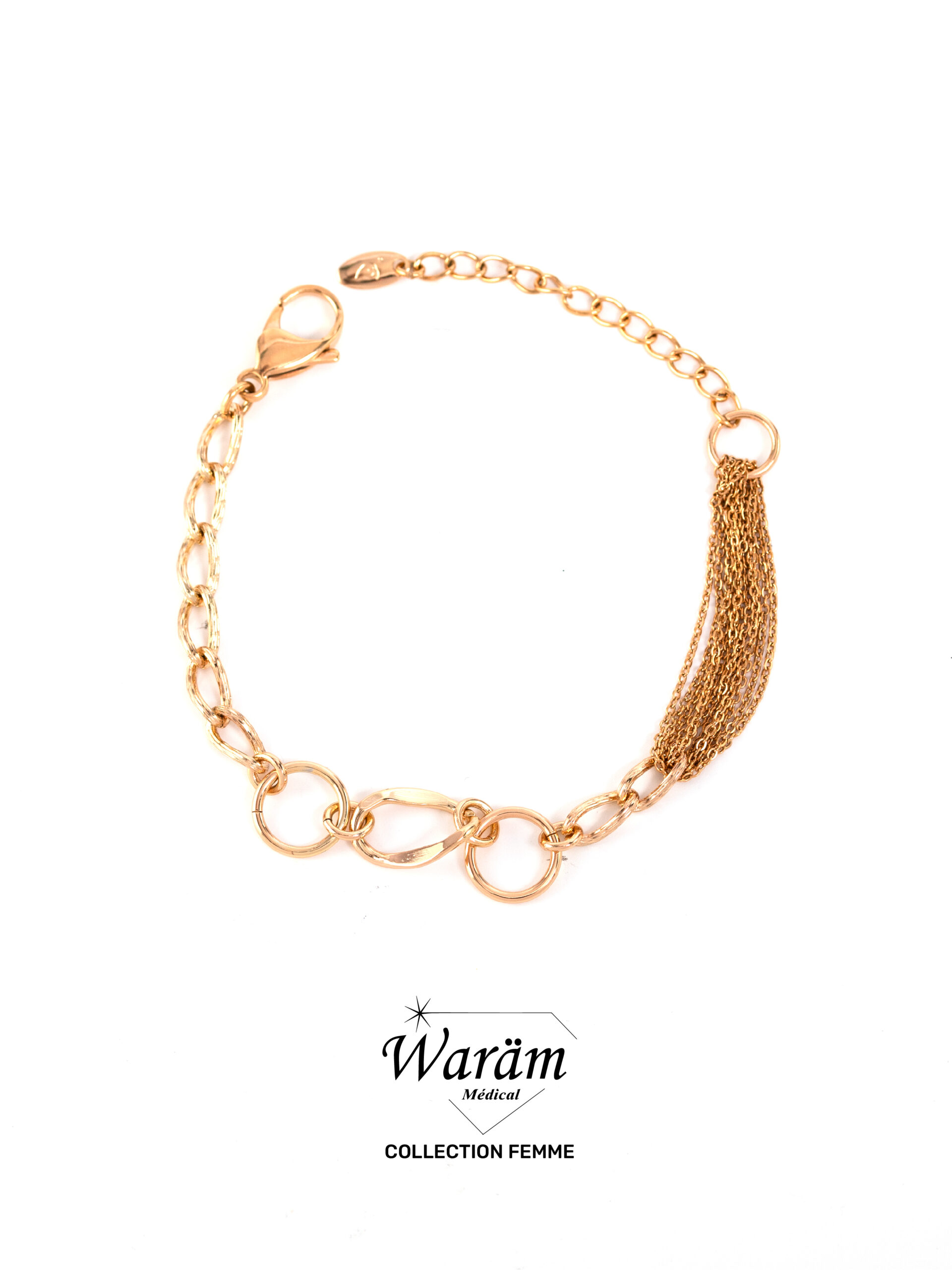 Bracelet chaîne doré avec alternance d’anneaux et mailles fines pour un rendu léger et élégant. Parfait pour sublimer vos looks avec une touche discrète et féminine.