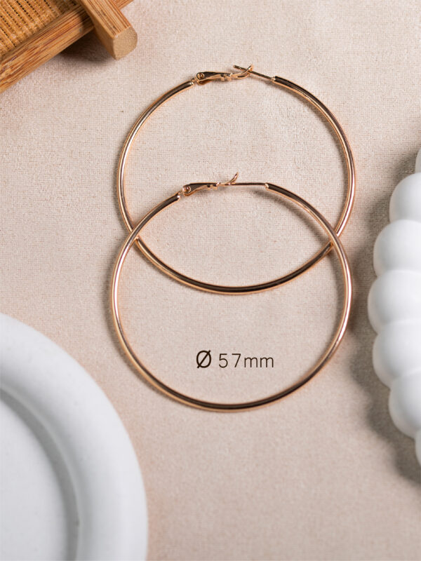 Sublimez votre style avec ces créoles dorées de taille moyenne (57 mm) au design raffiné. Conçues pour allier style, confort et durabilité, elles subliment toutes les tenues – du quotidien aux grandes occasions.
